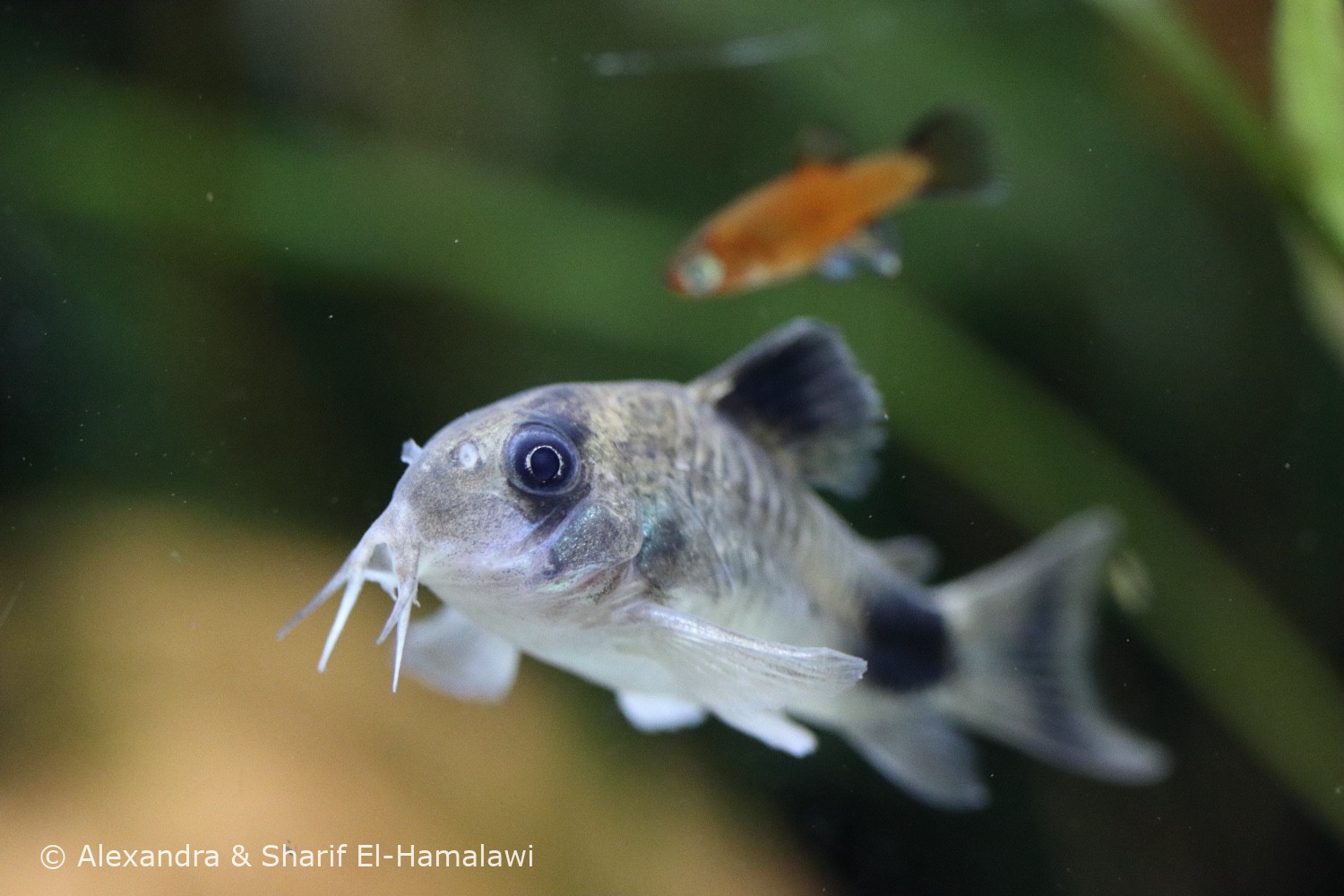 Im Jänner 2012 haben wir unser Aquarium eingerichtet. Neben unzähligen Schnecken wurde und wird es seither von Generationen von Wagtailplatys, Neonsalmlern (die sich leider nicht so wohl gefühlt haben bei uns), Amanogarnelen, neuerdings ein Schwarm Kupfersalmler und die geheimen Lieblinge, ein kleiner Schwarm Corydora Panda (Pandapanzerwelse) bevölkert. Einer dieser Pandapanzerwelse ist noch von unserem ursprünglichen Besatz aus 2012. mit 9 Jahren ist er ein wahres Methusalem. Zu sehen ist er im Beitragsbild oben. Die Amanogarnelen (unten ist ein Exemplar bei der Lieblingsbeschäftigung, dem Algenverzehr zu sehen) sind auch sehr fotogen.