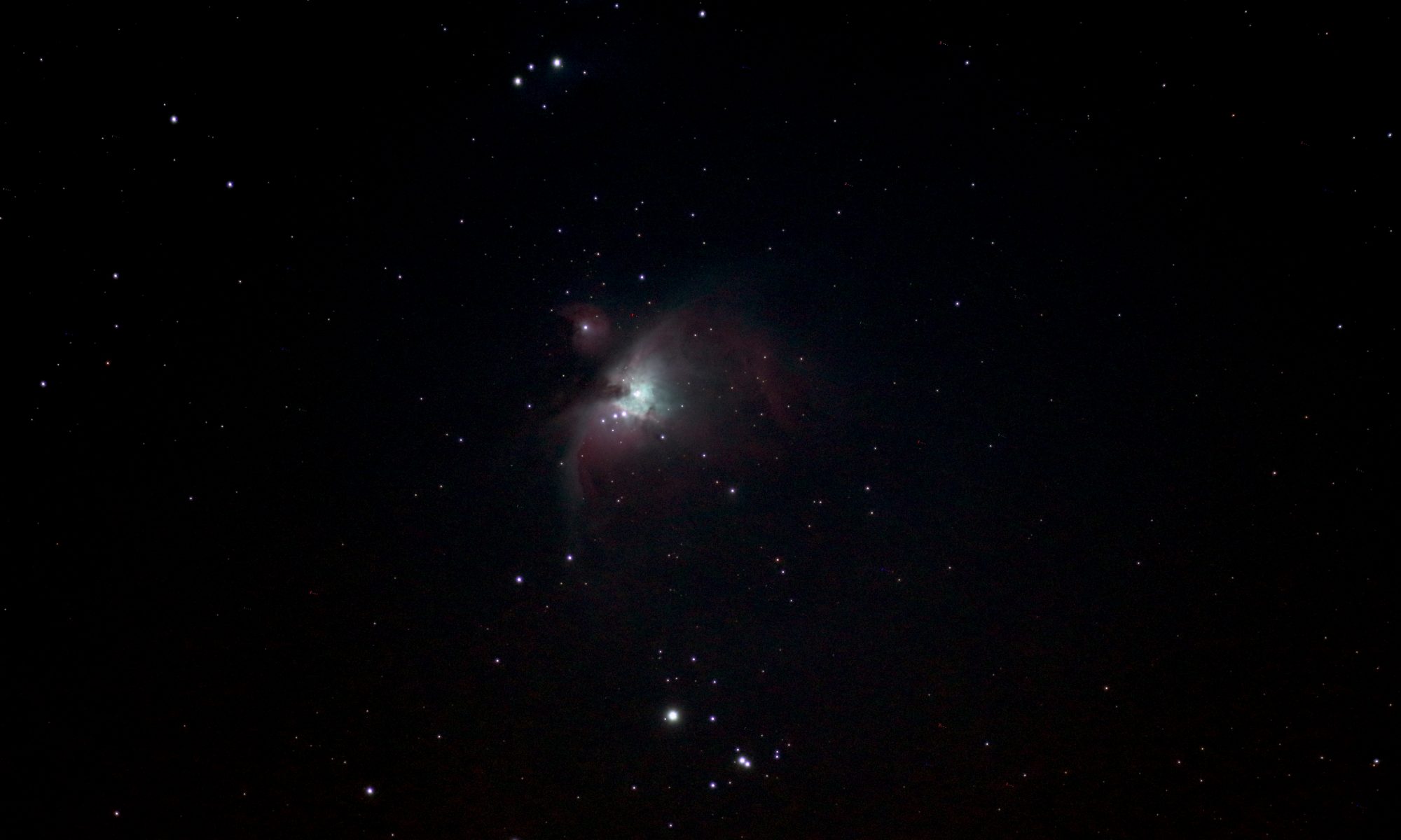 Gestern war wieder klarer Himmel in Wien und ich habe die Gelegenheit genutzt, zum ersten Mal ein Foto vom Orionnebel zu machen. Diese Aufnahme ist übrigens mein erster Versuch, ein Astrofoto durch Kombination mehrerer Einzelbilder zu optimieren. Das Beitragsbild ist die Kombination von 11 einzelnen Aufnahmen mit zusammen 72 Sekunden Belichtungszeit gemacht mit meiner Canon EOS M6 Mark II am Lacerta 72mm APO, 432mm Brennweite. An der Aufnahmetechnik ließe sich noch viel optimieren, ich habe zum Beispiel keine Dark- und Biasframes gemacht, mit denen technische Fehler wie Hotpixel und Bildrauschen besser unterdrückt werden. Das ist dann eine Sache für den nächsten Versuch….