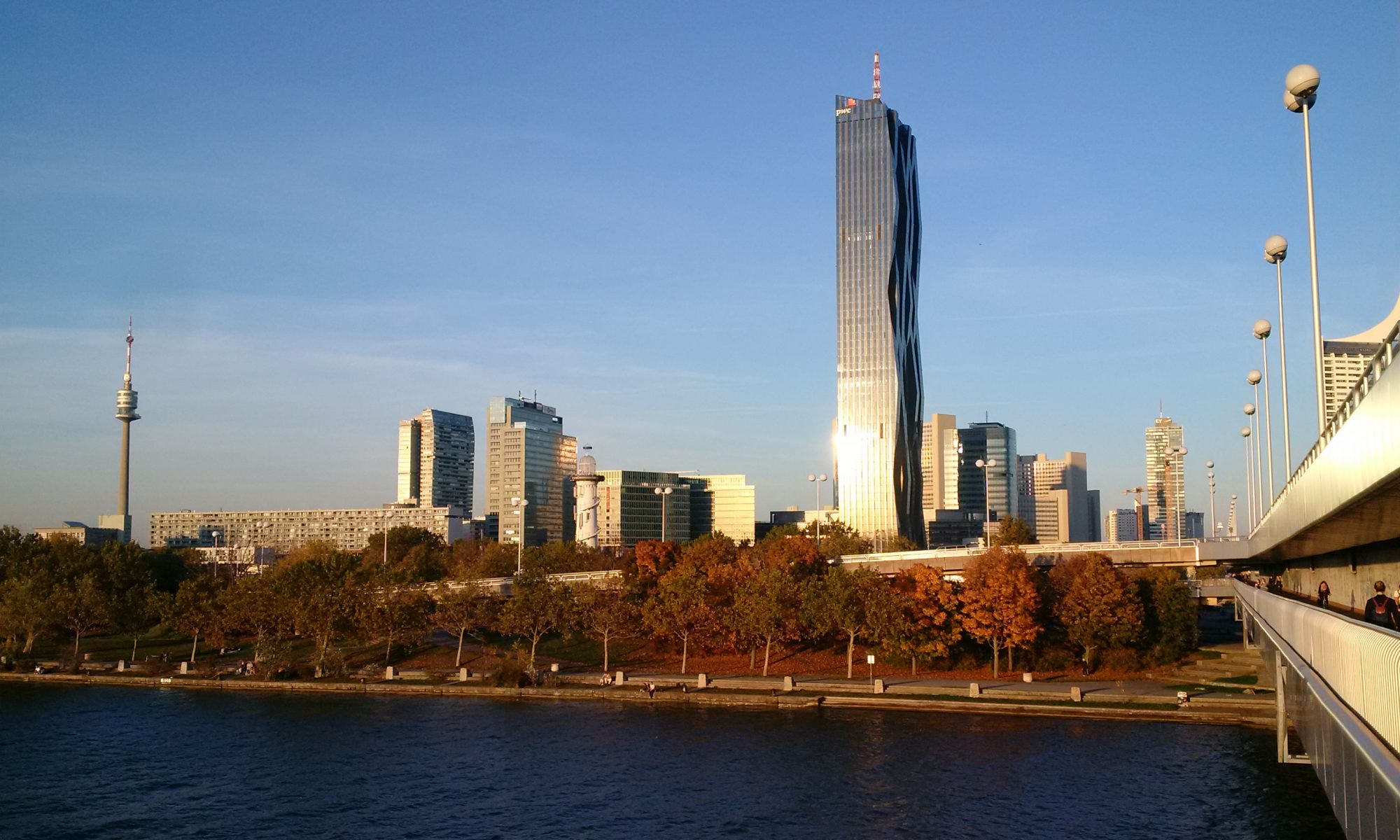 Ein Vorteil, mit dem Fahrrad unterwegs zu sein ist, dass man viele Eindrücke auf auf dem Weg mitnehmen kann. Letzten Donnerstag konnte ich am Weg vom „Kaiserwasser“ nach Hause auf der Reichsbrücke den DC Tower in dieser tollen Sonnenuntergangsstimmung sehen.